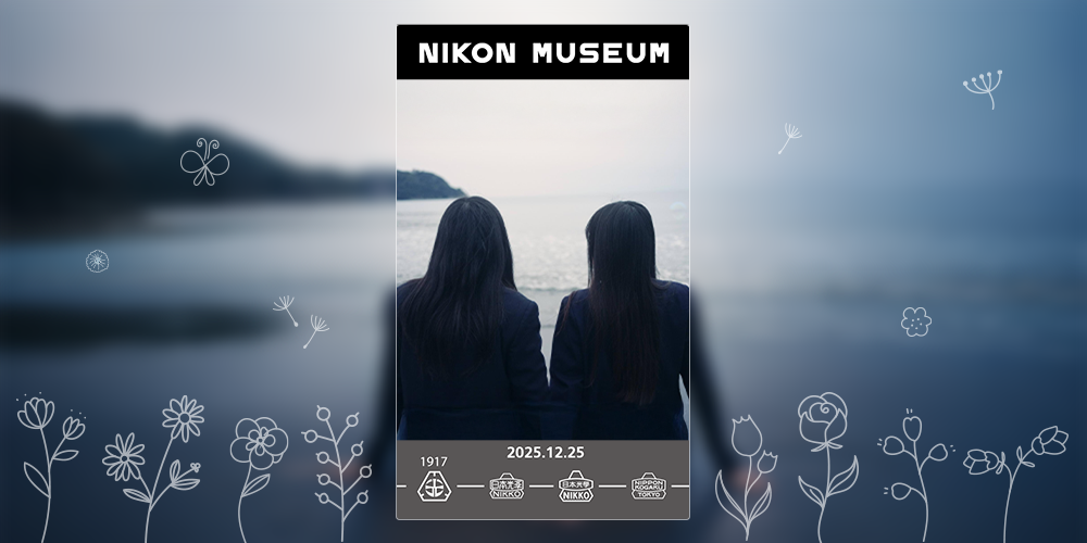 今回アララでは、来館時にアンケートへご回答いただいた方への特典として、ミュージアムオリジナルのWeb AR フォトフレームを制作いたしました。館内入口付近に設置されたアンケート用紙にご回答いただくと、ニコンがこれまでに提供してきた多彩な製品の中から厳選した製品を紹介するオリジナルカードを無料でプレゼント(※)。カード裏面のQRコードをスマートフォンなどで読み取ることで、Web AR フォトフレームを使った写真撮影をお楽しみいただけます。Web AR フォトフレームには撮影日の日付が自動で反映されるため、ご来館の記念撮影などに最適です。ぜひ館内での思い出作りにご活用ください。